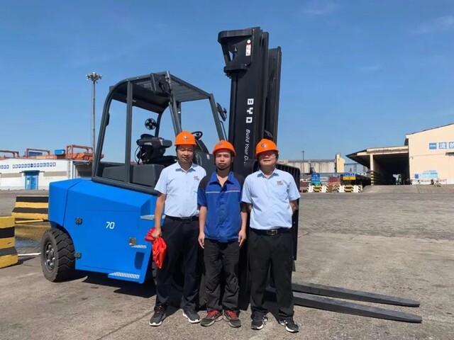 近日,比亞迪6噸、7噸新能源叉車順利交付北部灣港防城港碼頭有限公司,并舉辦了隆重的交付儀式,也標志著雙方的合作進入了新的階段。